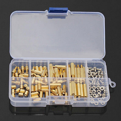 Distanční sloupky mosazné , šroubky , matice sada v uzavíratelné krabičce